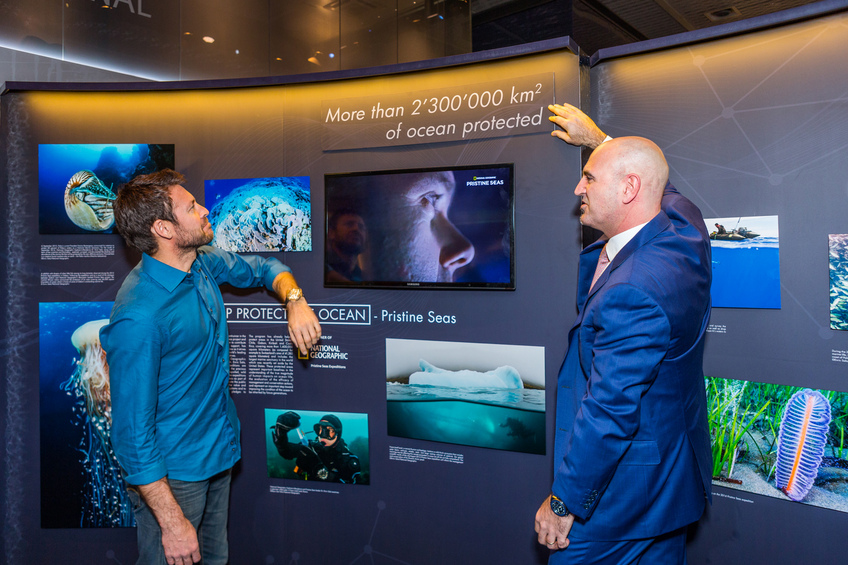In recognition of its close links to diving and its Fifty Fathoms history, for many years Blancpain has been a fervent supporter of environmental initiatives to preserve and protect the world’s oceans. Its generous financial donations to support the cause have come to be called the “Blancpain Ocean Commitment”. Chief among its beneficiaries have been National Geographic’s Pristine Seas Expeditions and the Gombessa Projects of Laurent Ballesta who attended the opening. A total of nine Pristine Seas expeditions have been undertaken with Blancpain's support. The governmental decisions to protect more than two million square kilometers of ocean, almost equal to the size of the Mediterranean Sea, have followed upon the efforts of the Pristine Seas.