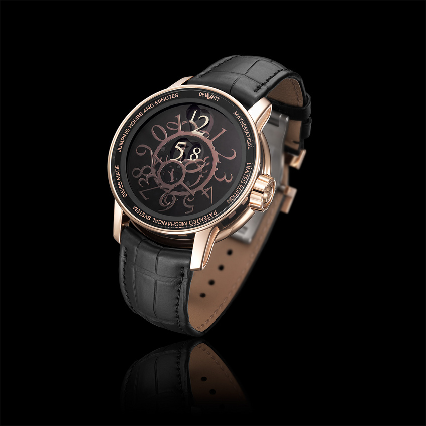 DeWitt's mystery watch concept bears witness to the passionate interest in mathematics shown by its founder, Jérôme de Witt. Far removed from the conventions of traditional watchmaking, the numerals indicating the hours and minutes give the impression that they have been scattered, thrown into chaos so that in the end they can give the precise time. There are no hands, but rather totally autonomous jumping numerals that come to life by lighting up in the centre of the watch to indicate the passage of time.