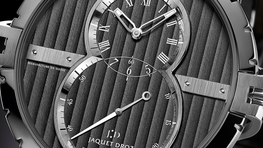 The Jaquet Droz Grande Seconde is immediately identifiable by its two off-centered dials that describe a figure eight with great purity of line.