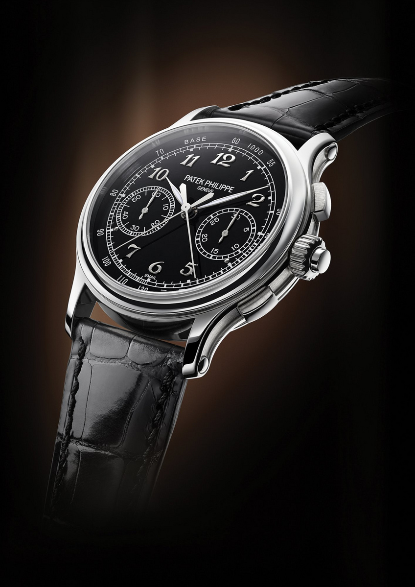 A glance at the dial illustrates what in Geneva is deemed functional beauty: fast and exact legibility without unnecessary embellishments that distract from the essence. Thanks to slender leaf-shaped hands with luminous coatings as well as the applied Breguet numerals in white gold, the time is eminently readable. Stopped times are also superbly legible with the slender chronograph and congruent split-seconds hands in rhodiumed steel as well as the instantaneous 30-minute chronograph counter hand in white gold and the white printed scales that stand out prominently against the black background. And it is not just black, it is intensely black, as is possible only with genuine enamel. This emphasis on tradition is reminiscent of the most fetching Patek Philippe pocket watches from the company's early history and of the roots of the Stern family which owns the manufacture; when they acquired Patek Philippe in 1932, the Sterns were already held in high esteem for the dials crafted by their "Cadrans Stern Frères" business.